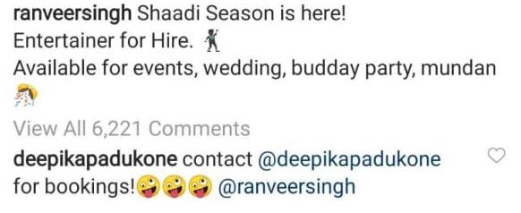 Soon after, Deepika commented on her husband’s picture saying, “Contact Deepika Padukone for bookings,” along with laughing emojis.