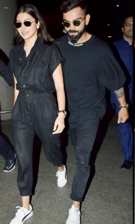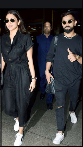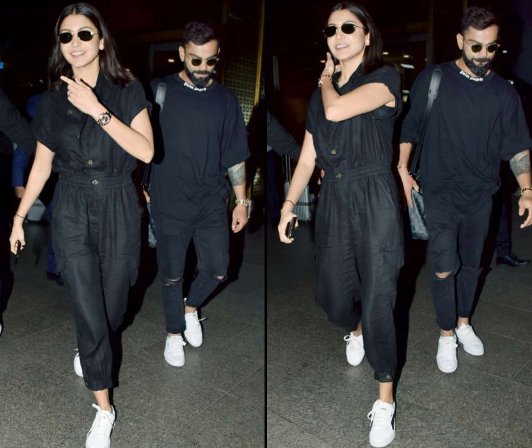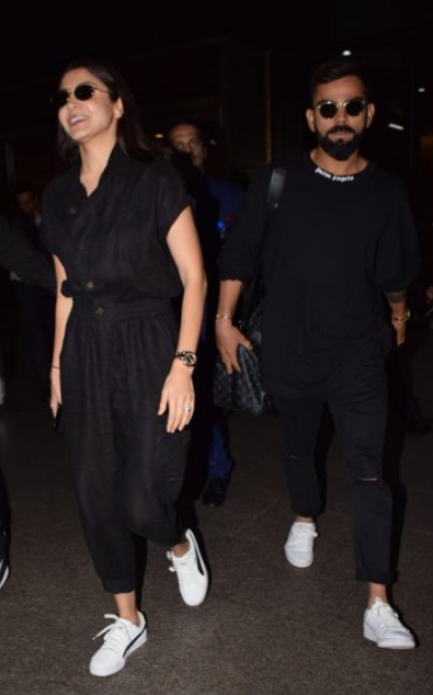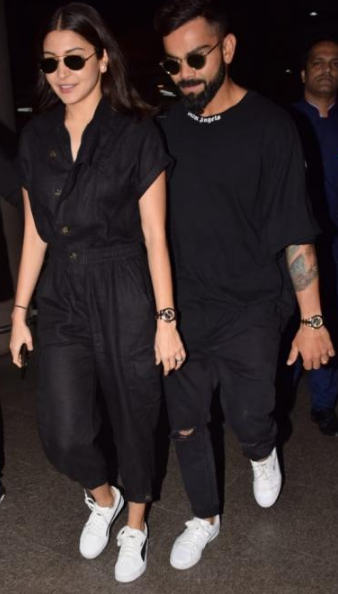 Anushka and Virat both stunned in an all-black casual attire and did not stop at the clothes but also coordinated their white shoes and black shades as well, giving off fierce vibes.