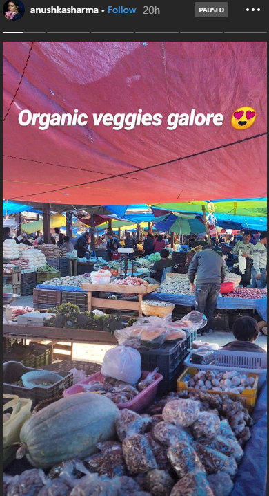 The 31-year-old Zero actor turned to Instagram to give a glimpse of her vacation with husband Virat Kohli in Bhutan, as they take a trip down memory lane in a vegetable market.