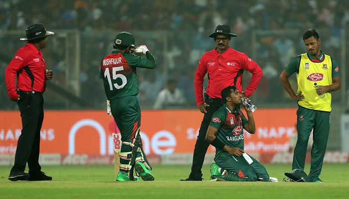 The first T20I between India and Bangladesh in Delhi became a victim of the smog engulfing the city leading to Bangladesh's Soumya Sarkar and one other player to throw up on the field during a successful run chase, ESPNCricInfo reported.