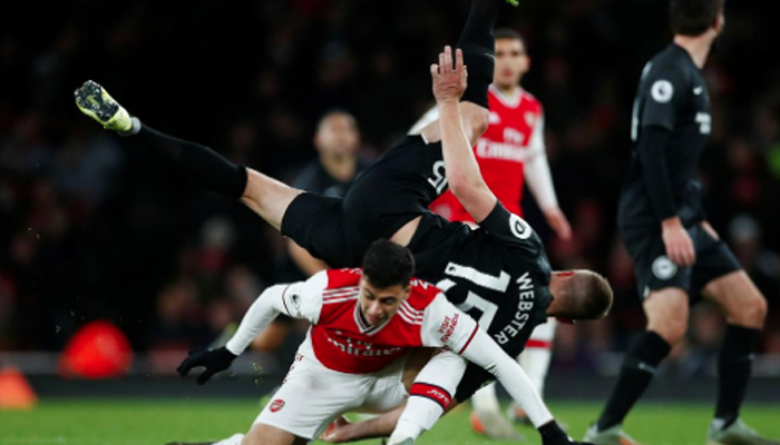 Brighton had an early chance when Arsenal defender Hector Bellerin brought down Aaron Connolly on the edge of the area, but Pascal Gross blasted his free kick straight into the Arsenal wall.