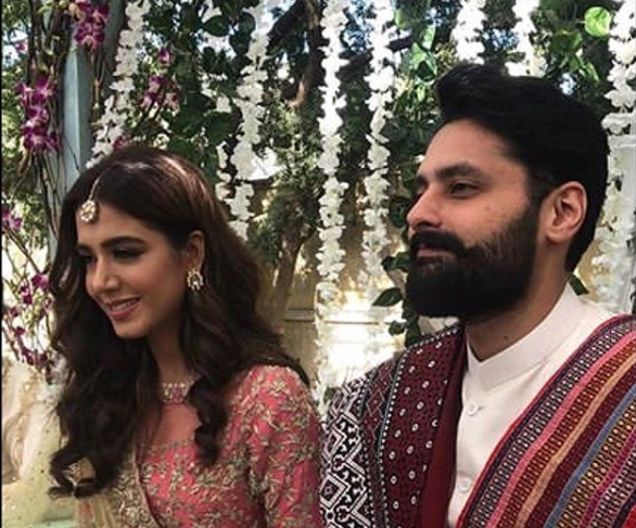 Pakistani social rights activist and lawyer Jibran Nasir and actor Mansha Pasha have finally gotten engaged as photos and videos from their ethereal day-time ceremony held on Sunday are now coming afloat online.