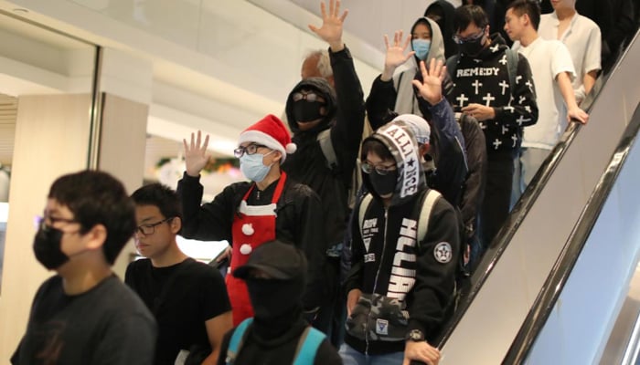 HONG KONG: Hong Kong anti-government protesters marched through Christmas-decorated shopping centres on Wednesday, chanting pro-democracy slogans and forcing one mall to close early, as police fired tear gas to disperse crowds gathering on nearby streets.