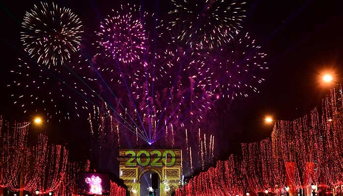 Fireworks light the sky over the Arc de Triomphe during the New Year's celebrations on the Champs Elysees avenue, in Paris, on on January 1, 2020. Photo: AFP