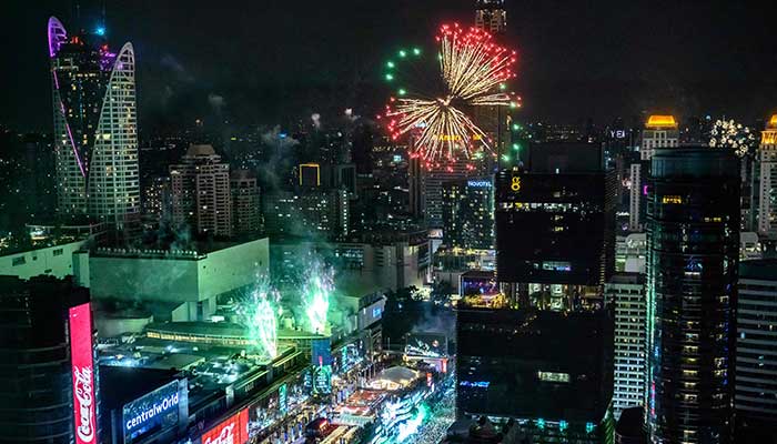 Fireworks erupt over downtown Bangkok during New Year´s celebrations on January 1, 2020. Some 100 000 people gathered to welcome the new decade. Photo: AFP