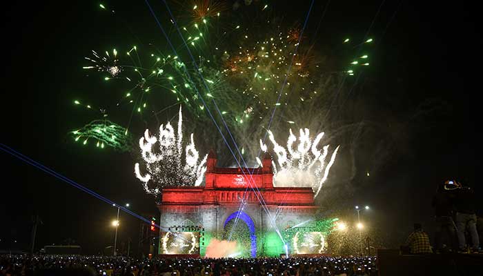 New Year's Eve fireworks erupt over Mumbai´s iconic Gateway of India on January 1, 2020. Photo: AFP