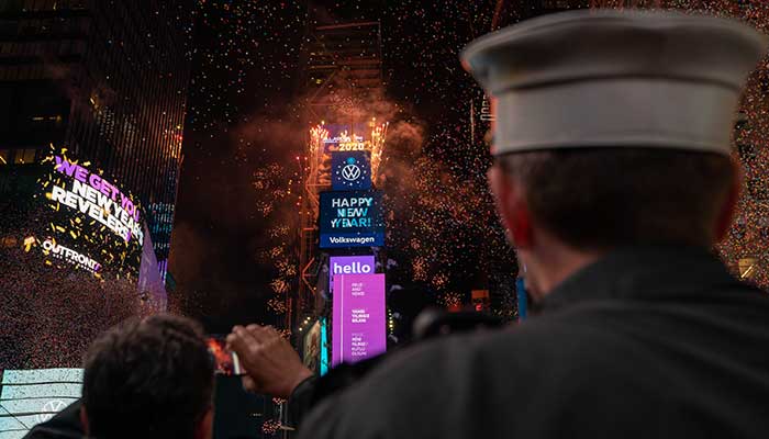 The traditional drop of a Waterford crystal ball on Times Square in New York capped a six-hour New Year’s Eve show. Intermittent rain did little to dampen the festivities as hundreds of thousands of people were treated to performances by pop star Post Malone, the Korea-pop band BTS, and singer song writer Alanis Morisette.