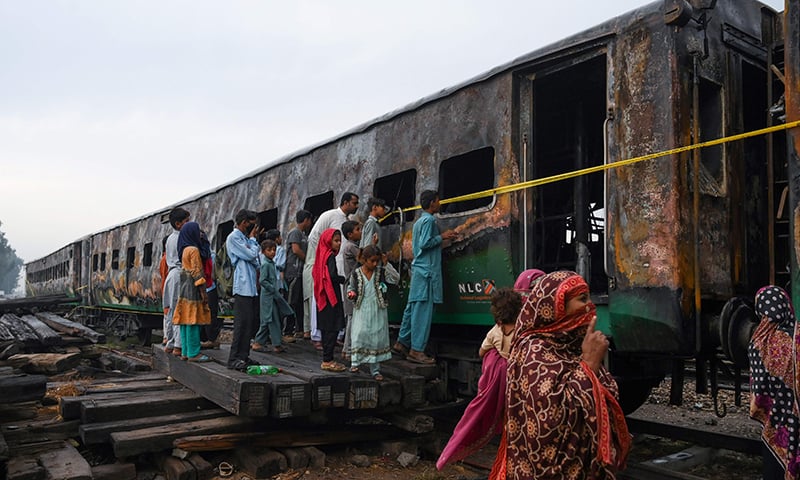 Previously, Federal Minister for Railways Sheikh Rashid had said that the fire had been caused by the explosion of gas cylinders which were brought aboard the train by some passengers.