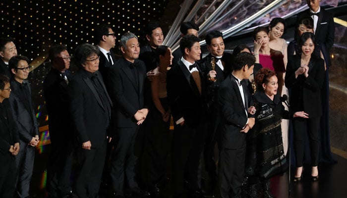 The Oscars kicked off Sunday with a historic early triumph for South Korea's black comedy thriller Parasite — tipped to battle war epic 1917 for the night's top prize — as winners including Brad Pitt struck a political note.
