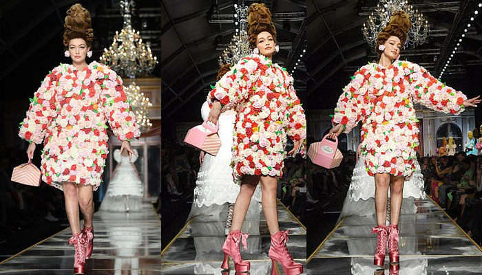 Gigi Hadid led the catwalk in eye-catching quirky rose dress at Moschino's Milan Fashion Week show on Thursday.