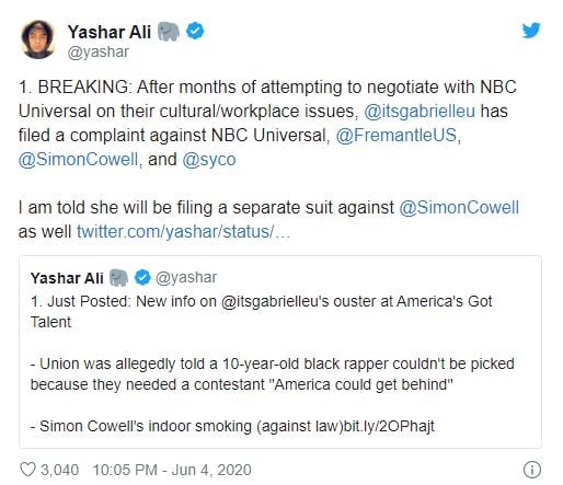 Gabrielle Union has filed a lawsuit against America's Got Talent production company Fremantle, NBC Universal, as well as Simon Cowell’s production company Syco. for their racist behaviour on the show.