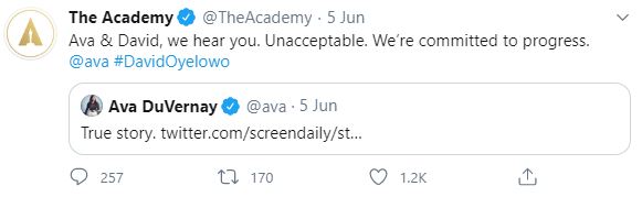 The Academy, in response said, "Ava & David, we hear you. Unacceptable. We’re committed to progress."
