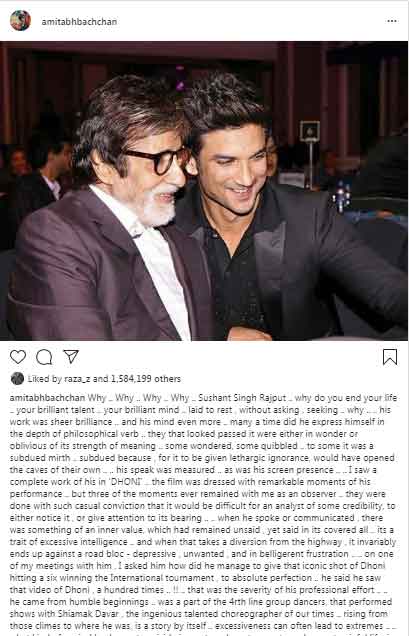 The Bollywood megastar penned his feelings and pay a befitting tribute to Sushant in a eulogy which he posted on Instagram.