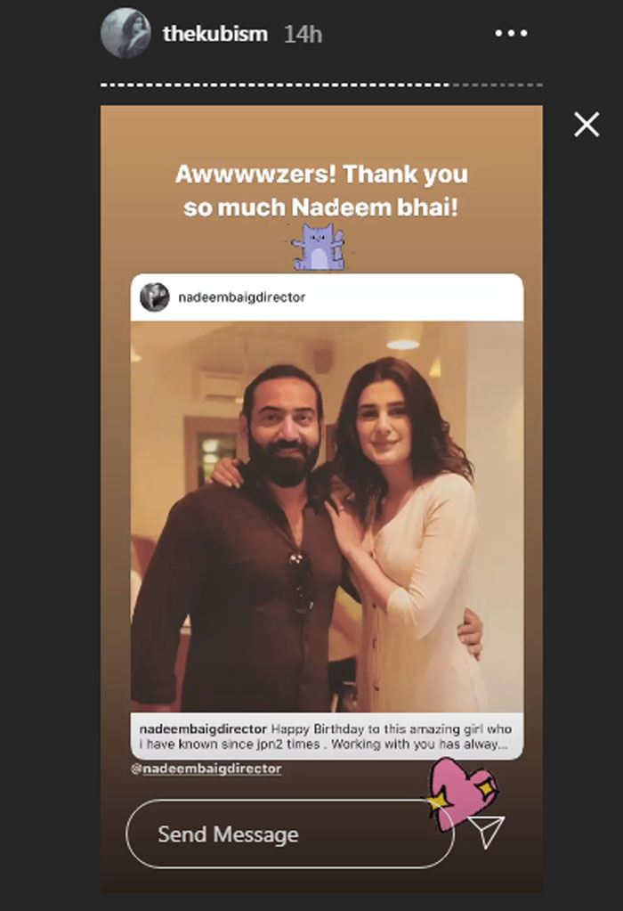 Separately, the Mere Paas Tum Ho actor shared throwback photo with co-star Kubra Khan on his Instagram story and wrote, “Happy Birthday @thekubism May Allah always keep you happy and healthy.”