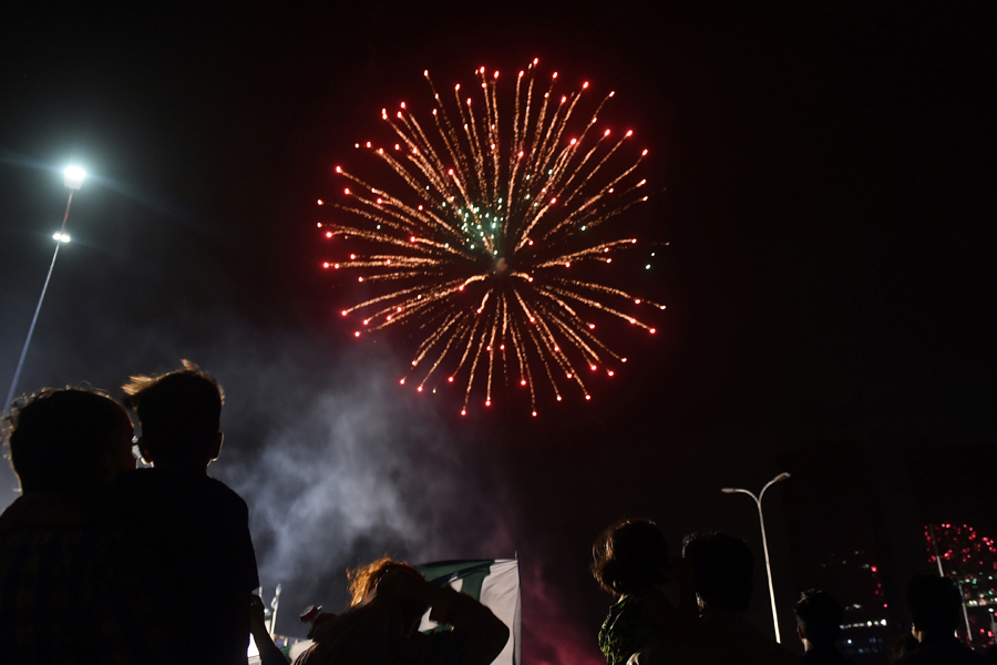 Header image: Beautiful fireworks light the sky close to the Minar-e-Pakistan in Lahore during Pakistan Independence Day celebrations. — Online photo by Rana Sajid