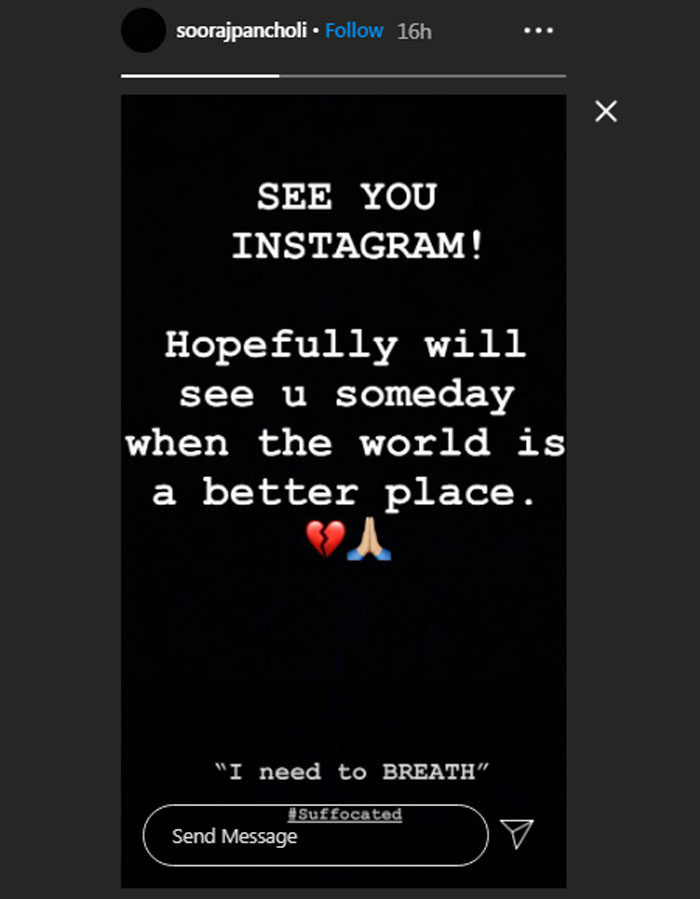 Indian star Sooraj Pancholi has announced to quit the photo-video sharing platform Instagram and deleted all his posts except one.