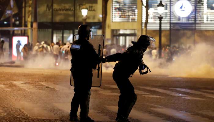 The violence occurred around the Parc des Princes stadium and on the Champs-Elysees avenue during and after the match on Sunday night, police said on Twitter.