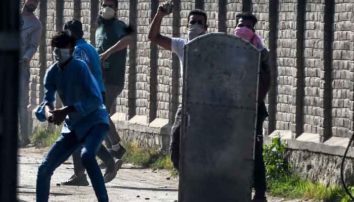 SRINAGAR: Hundreds of infuriated residents clashed with Indian security forces Thursday after four persons, including a woman, were martyred following an alleged firefight.