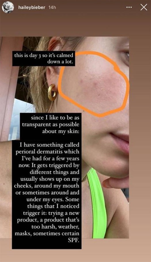 The candid note came via Instagram Stories where the model snapped a picture showcasing her perioral dermatitis at its worst.