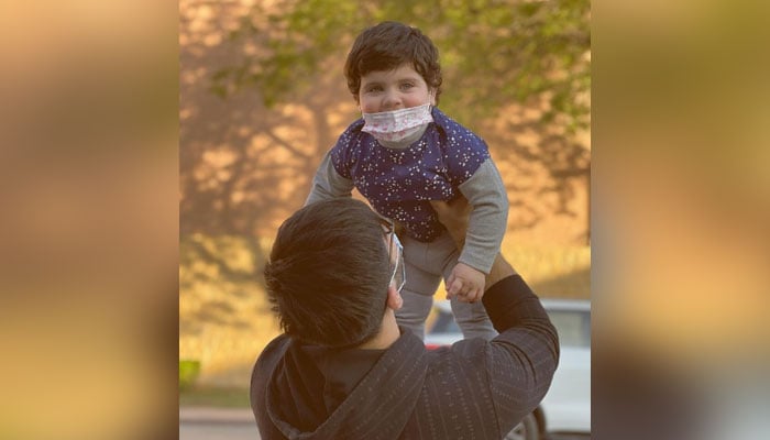 Pakistani actress Aiman Khan took to Instagram to share an adorable snap of her daughter Amal and husband, actor Muneeb Butt.