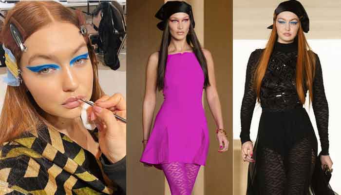 The mother-of-one was looking amazing in a beautiful chiffon black gown with daring electric blue makeup for her runway debut. She also wore a fiery ginger wig, which looked stunning with her bold eyes. Her younger sister Bella Hadid also sizzled in a pink mini dress with a silk head scarf.