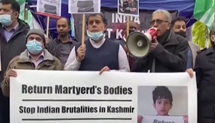 The protesters also raised placards, which had slogans in favour of the people of Kashmir and against Indian atrocities in the occupied territory.