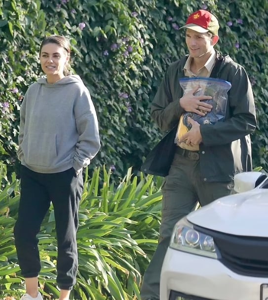 While wife Mila Kunis looked in a cheerful mood dressed casually in black sweatpants and a gray hoodie.