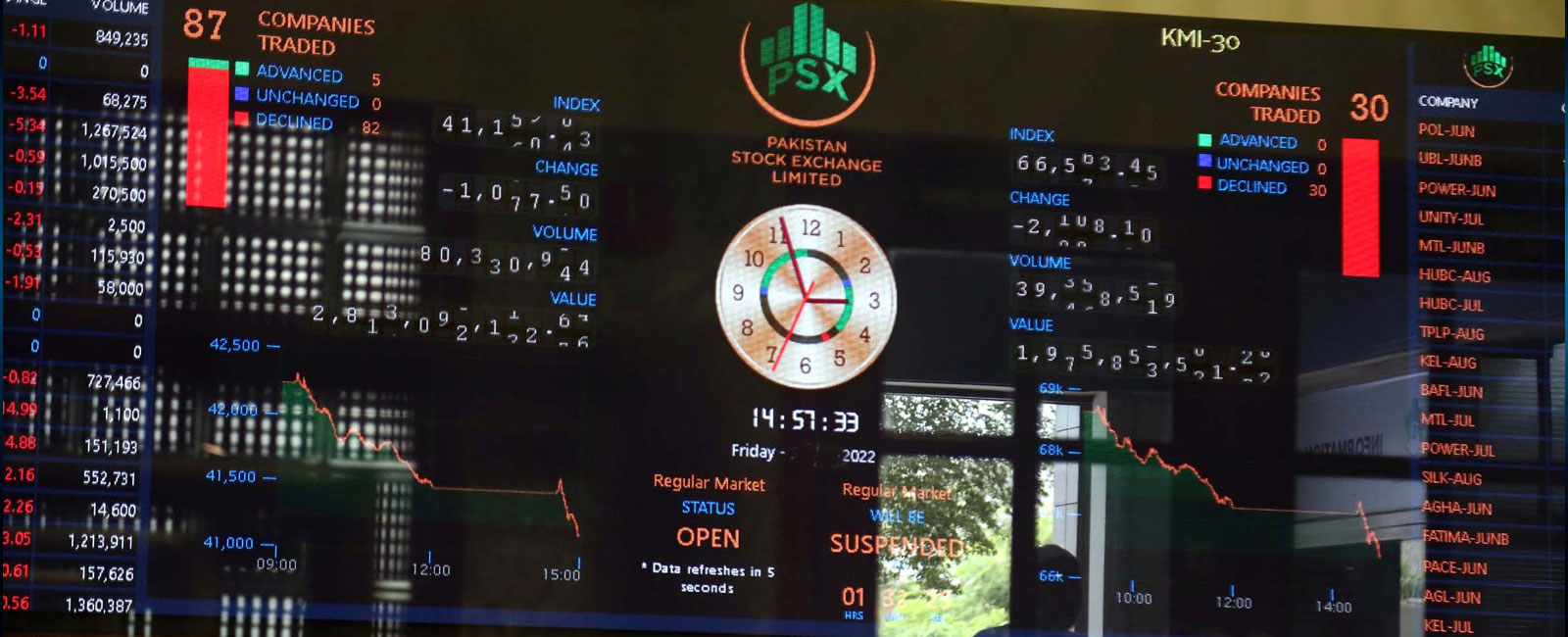 An undated thumbnail and banner image of the Pakistan Stock Exchange has been taken from APP