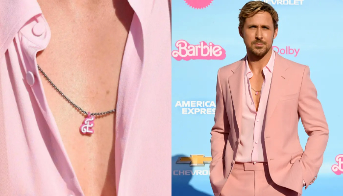 Ryan, literally, kept his dream girl close to his heart as he wore a pink-coloured letter ‘E’ pendant along with a pink-coloured pantsuit at the premiere.
