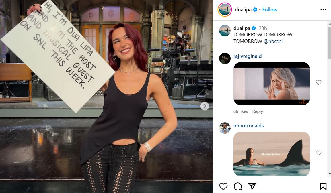 Dua Lipa just expressed her excitement over the upcoming gig she scored for Saturday Night Live.
