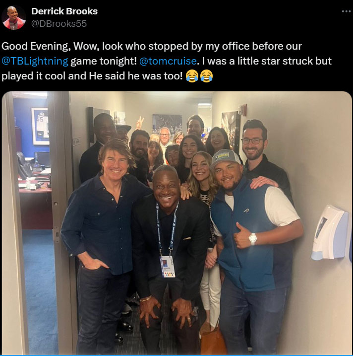 "Good Evening, Wow, look who stopped by my office before our @tblightninggame tonight! @tomcruise. I was a little star-struck but played it cool and He said he was too!," he captioned.