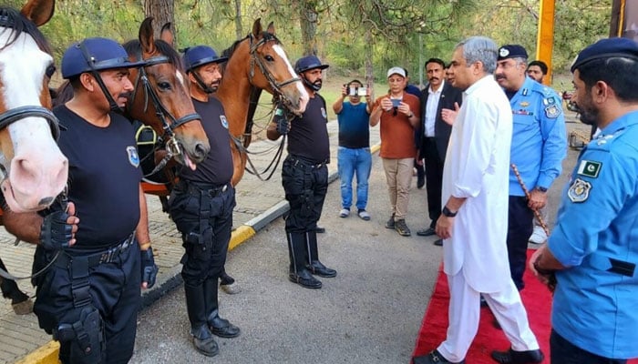 The minister inspected the motorcycle and cavalry unit and also met the police officers of the Margalla Trails Patrol Unit and advised them to perform their duties diligently.