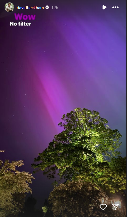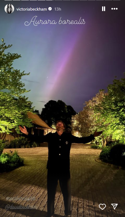 Victoria and David Beckham found themselves swept up in a celestial spectacle on Friday as the night skies over the UK turned into a canvas of pink and green hues, courtesy of the Northern Lights.