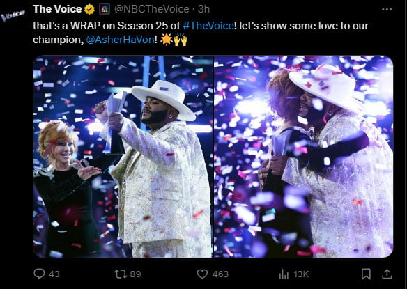 On Tuesday, May 21, Asher HaVon from team Reba won The Voice season 25, while Josh Sanders from the same team took second place in the music show.