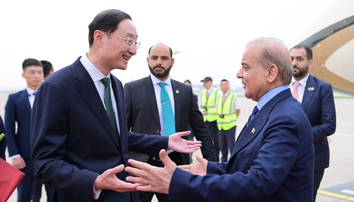 Prime Minister Shehbaz Sharif touched down in Beijing, where he received a warm welcome by Chinese Vice Foreign Minister Sun Weidong at the airport.