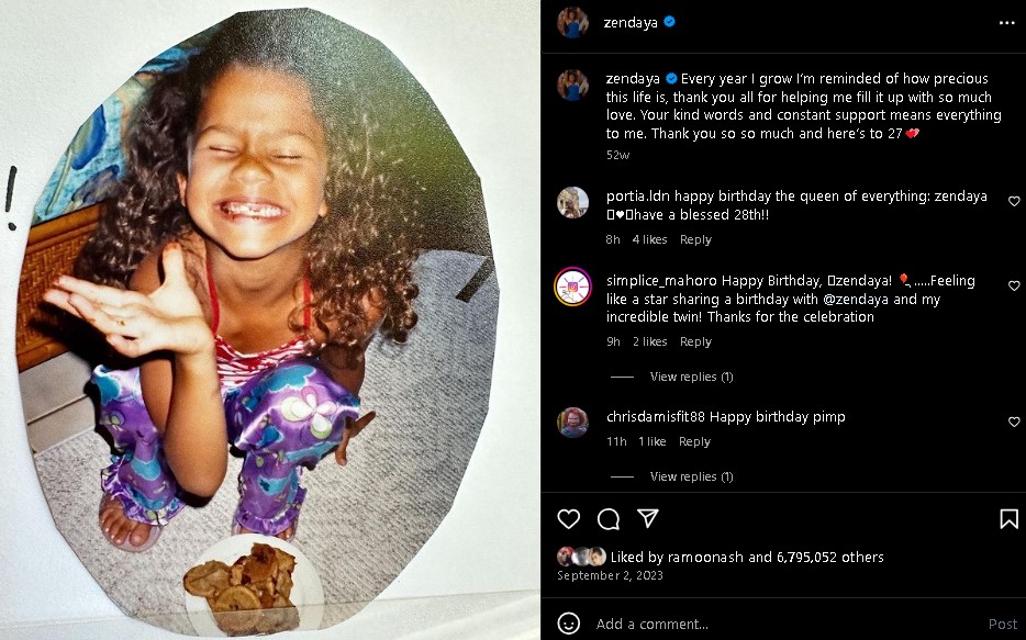On Monday, Zendaya, who turned 28 a day earlier, took to Instagram to express her gratitude for the birthday wishes from fans.