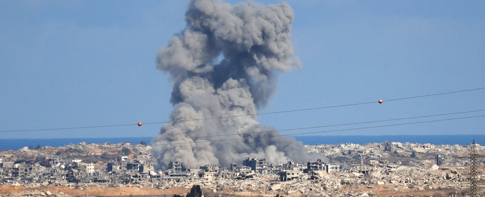 People look at smoke rising from explosions in Gaza, as seen from southern Israel, October 7, 2025. — Reuters