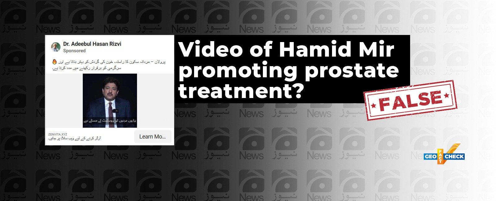 A video on social media appears to show Pakistani journalist and talk show host Hamid Mir promoting a prostate treatment. Social media users believe the claim to be true.