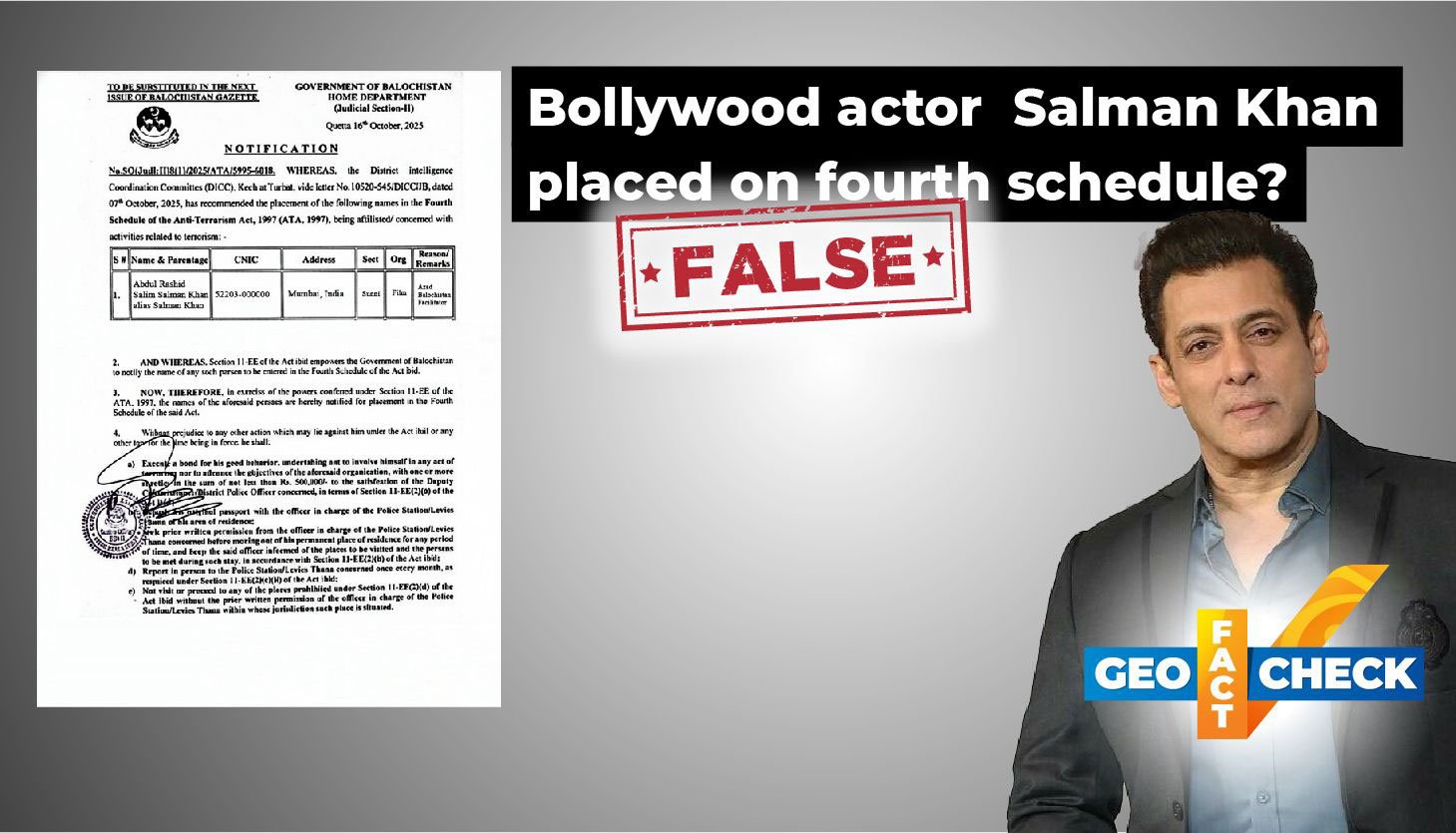 Fact-check: Fake notification claims Indian actor Salman Khan placed on Pakistan's fourth schedule