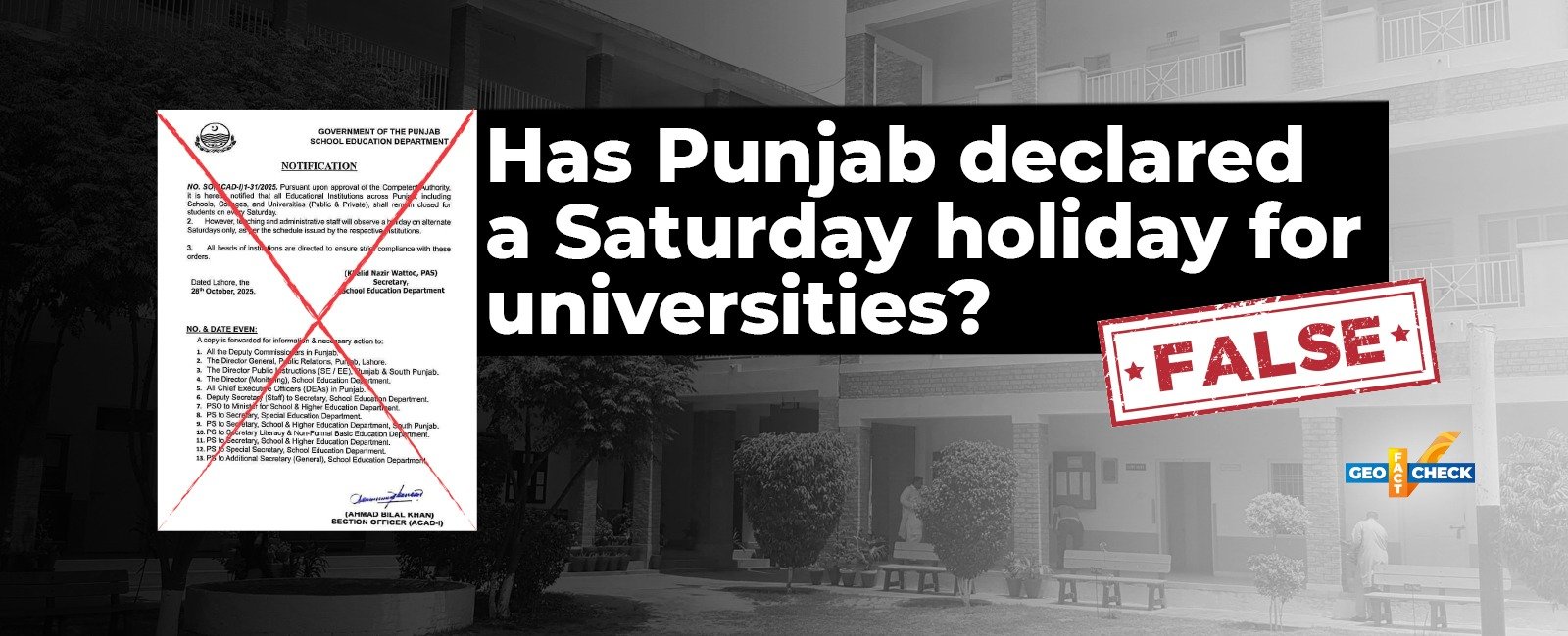 Noor-ul-Huda, the public relations officer to the Punjab education minister, also told Geo Fact Check via phone that the School Education Department has no authority to issue directives for colleges and universities. “The notification is fake, not issued by the School Education Department,” he said.