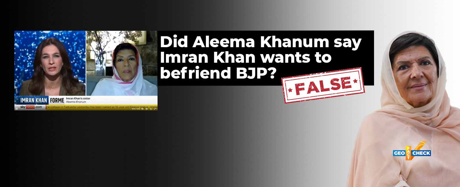 Recently, Aleema Khanum appeared on Sky News to talk about her jailed brother and former prime minister Imran Khan. Shortly after the interview aired, a clip began circulating in which an online user accused Khanum of calling Khan “an asset of the West” who also wants to “befriend” the Bharatiya Janata Party (BJP), India’s ruling party.
