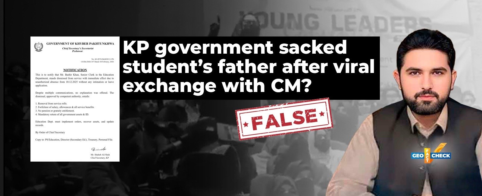 Following a viral exchange between a female student and Khyber Pakhtunkhwa Chief Minister Sohail Afridi, a notification began circulating online claiming that the provincial government had dismissed the student’s father from his government job.