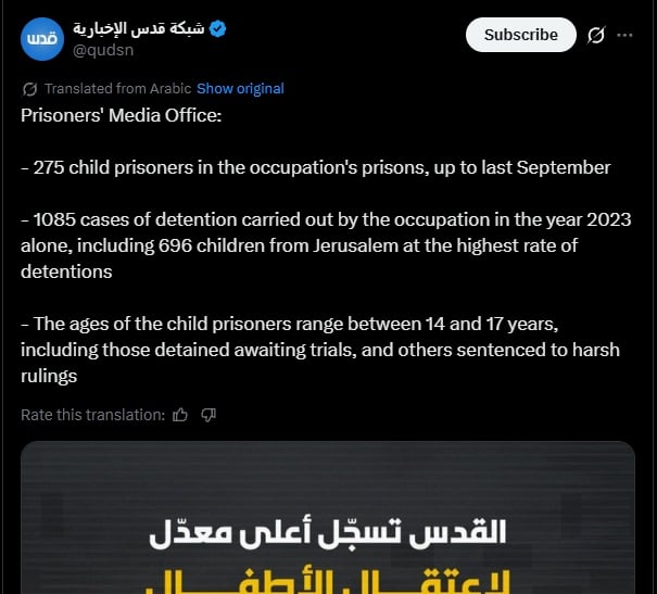 In 2023 alone, 1,085 detentions were recorded, including 696 minors from Jerusalem, many facing harsh sentences or awaiting trial.