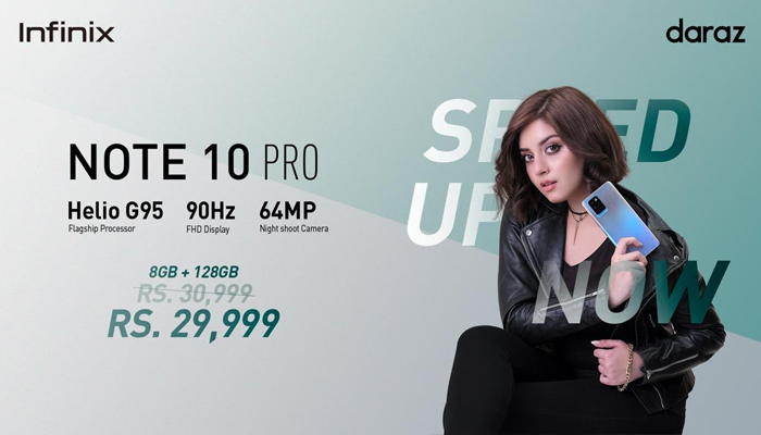 Lahore – May 18, 2021: Infinix Number 1 selling smartphone brand in Pakistan launches NOTE10 Pro most anticipated device of 2021 . Device offers flagship MediaTek Helio G95 flagship processor With a smooth 90Hz refresh rate and efficient touch responses at 180Hz which will now speed up the lifestyle of young people in Pakistan. Infinix NOTE 10 Pro will available at amazing introductory price point of Rs. 29,999/- only alongwith sale offer Gift iRocker TWS Bluetooth Earbuds on Daraz.